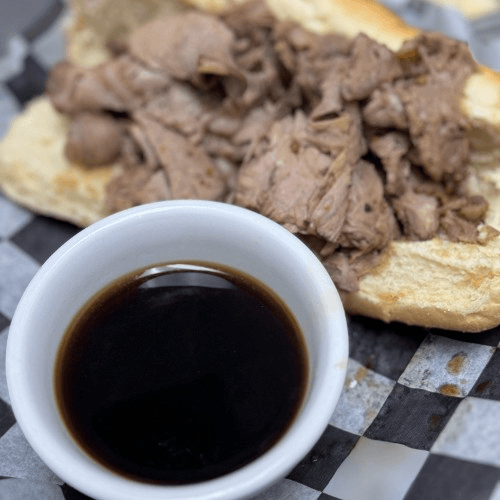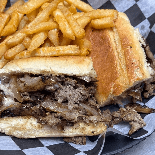 In house roasted prime rib, shaved and grilled on a hoagie with au jus, & fries
