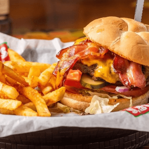 Crispy fried chicken tossed in your choice of R.J.'s sauces, lettuce, tomato, onions & a pickle served on a grilled bun
