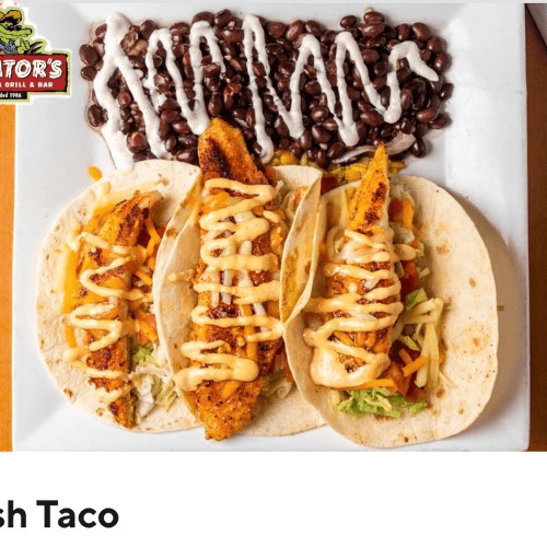 With fried alligator, Jack and Cheddar cheeses, cajun ranch and coleslaw. Must try!