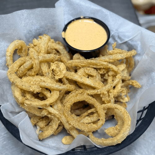 Tender calamari lightly breaded and fried. Served with marinara and island sauce